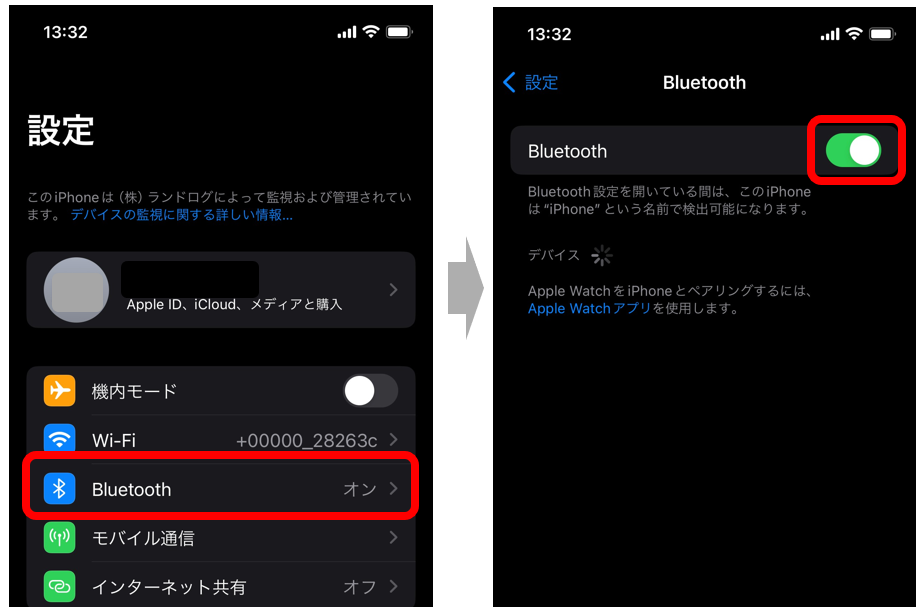 ・iPhone/iPadのBluetooth設定がONになっているか確認してください
